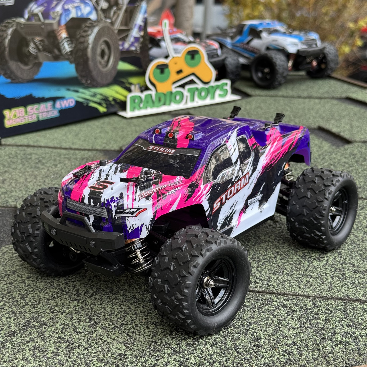 Подаруй дитині справжнє RC-шоу з монстр-траком «Blaze Storm» у яскравому рожевому виконанні – цей потужний радіокерований позашляховик створений, щоб шалено розважати і дивувати. Завдяки масивним колесам, підвісці великого ходу та агресивному дизайну він легко долає перешкоди — гірки, горбики, подряпини на асфальті чи навіть вовняний килим.